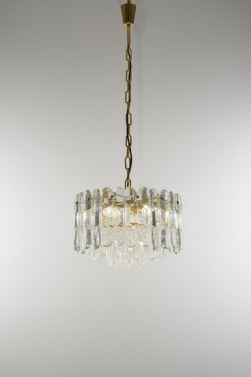 J.T. Kalmar Palazzo Kronleuchter, vergoldet mit Glaselementen aus den 1970er Jahren, Wien